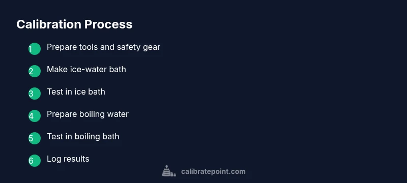 The most common calibration approach uses two anchor points: a freezing reference at 0°C (32°F) and a boiling reference near 100°C (212°F) at sea level. In practice, you’ll calibrate your thermometer by immersing the sensing tip into each bath without touching the sides of the container. Keep in mind altitude changes the boiling point; adjust expectations accordingly. Calibrate Point’s guidance emphasizes cleanliness, avoiding cross-contamination, and validating readings with a second thermometer if you have one. Use a thermometer with adequate immersion depth, and ensure the probe is fully covered by the liquid for accurate sensing. If you cannot access both points, proceed with the highest stable reading you can and note the limitation for future reference.