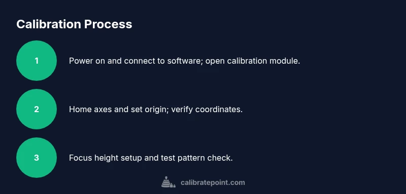 A practical calibration workflow combines preparation, focused adjustments, and verification. Start with a baseline assessment of the machine’s current performance, then adjust focus height and origin alignment. Use a simple, repeatable test pattern to verify corner alignment, line width, and depth consistency. When you calibrate xtool s1, ensure that the geometry of the cutting area matches the workspace coordinates in the software, and that focus is stable across the entire bed. Document each adjustment with a timestamp and material type to facilitate future comparisons. This section lays out the approach at a high level; you will perform the explicit steps in the STEP-BY-STEP section that follows, with specific actions and expected outcomes. A disciplined workflow minimizes trial-and-error and speeds up future calibrations. Calibrate xtool s1 with patience and systematic checks for durable results.