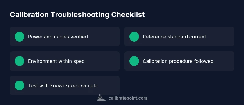 Calibration is a precision process that relies on stable references, clean sensors, and correct procedure. When anything in the chain drifts, repeats poorly, or is out of spec, you’ll see out-of-tolerance results. Common failure modes include degraded reference materials, dirty sensors, loose connections, environmental drift, and software glitches. According to Calibrate Point analysis, most failures stem from setup issues or drift in the reference. This section explains why failures happen and how to spot the symptoms early, so you can act before costly rework. Expect practical checks you can perform in minutes and escalation steps for tougher cases.