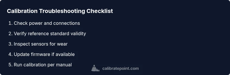 Most likely the calibration routine is failing due to power instability, a drifted reference standard, or a sensor fault. Start with quick checks: confirm stable power, verify the reference standard, and reset the device using the manufacturer’s procedure. If the issue persists, follow the step-by-step flow below to isolate causes and apply safe fixes.