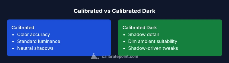In the realm of display calibration, the phrase calibrated vs calibrated dark captures two anchor points for how you present color, luminance, and shadow details. The distinction matters because it affects decisions from production color grading to everyday QA checks. According to Calibrate Point, most workflows start from a calibrated baseline to establish color fidelity, then adapt to calibrated dark for scenarios that require shadow nuance. When you understand the difference, you can document your settings, ensuring that colleagues and clients see consistent results across devices and environments. The concise takeaway is that calibrated states anchor color in a reference framework, while calibrated dark shifts emphasis toward shadow, contrast, and depth without abandoning overall accuracy.