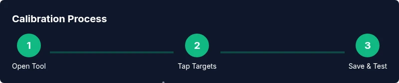 Tip: Remove any glass screen protector if it interferes with tapping accuracy; reattach after calibration if needed. - 3
