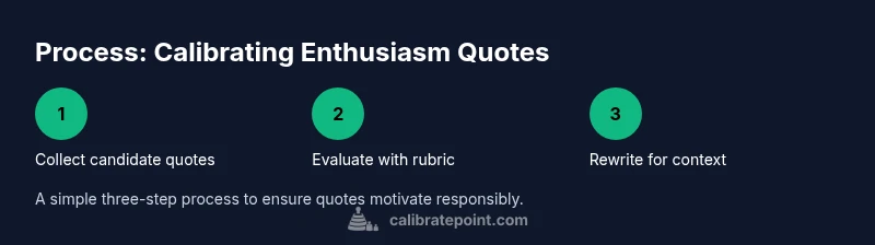 In practice, calibrating your enthusiasm quotes means creating motivational lines that push for action while respecting limits of reality. It’s about balancing energy and credibility, so readers feel inspired but not misled. According to Calibrate Point, the aim is to convert raw enthusiasm into actionable prompts that you can apply in meetings, proposals, and everyday work. The process begins with clarity: define the outcome you want from a quote, then test whether the energy in a quote matches the task's required rigor.