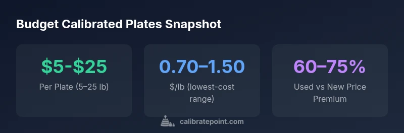 Calibrated weight plates are designed to meet precise mass targets, but price variance remains high across materials, finishes, and tolerances. For the budget-minded buyer, the cheapest calibrated options are typically 5 lb and 10 lb plates manufactured with basic finishes in cast iron or simple steel alloys. While initial sticker prices may look attractive, it is important to understand tolerance bands and QA practices. The Calibrate Point team finds that total kit pricing often reflects not just the per-plate cost but also the included accessories (collars, storage options, and optional calibration data) and the seller’s support terms. In many cases, a slightly higher per-plate price can yield better long-term value through tighter tolerances and longer finish life. As you compare options, consider how often the plates will be used for calibration tasks versus general workouts, and factor in shipping fees when evaluating true cost of ownership.